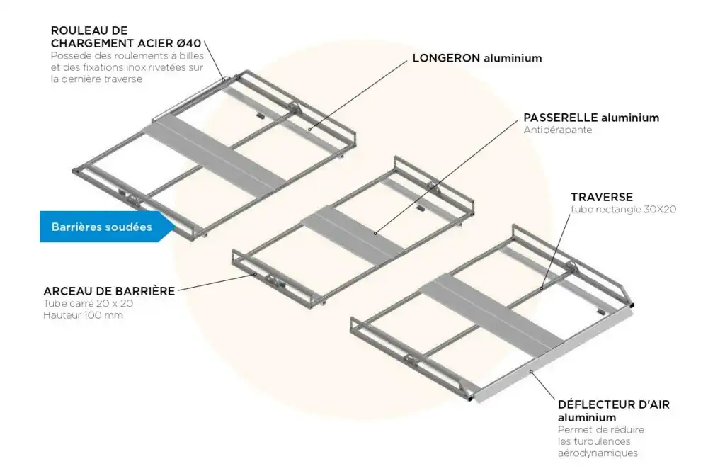 La galerie acier allie robustesse et fonctionnalité. Son rapport qualité/prix et son équipement complet de série en font l’outil indispensable pour tous les métiers et permet l’arrimage de votre matériel toute sécurité.