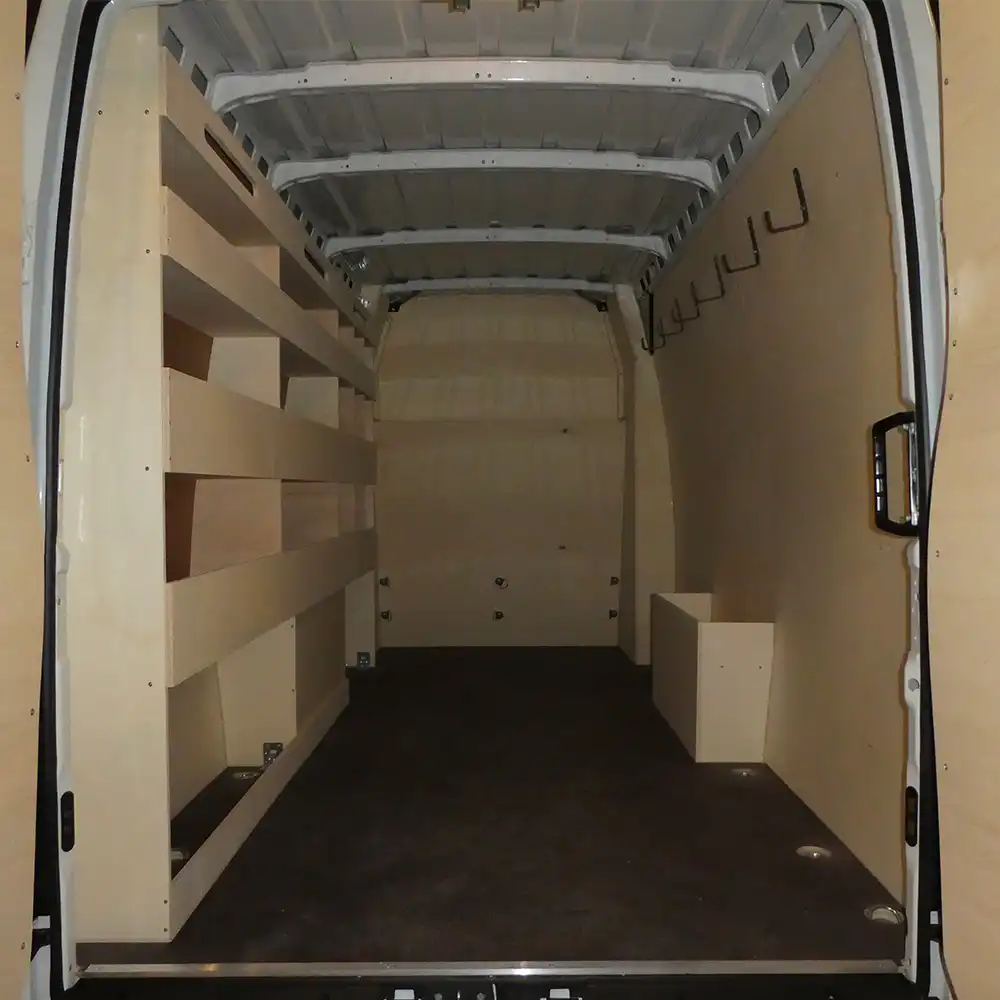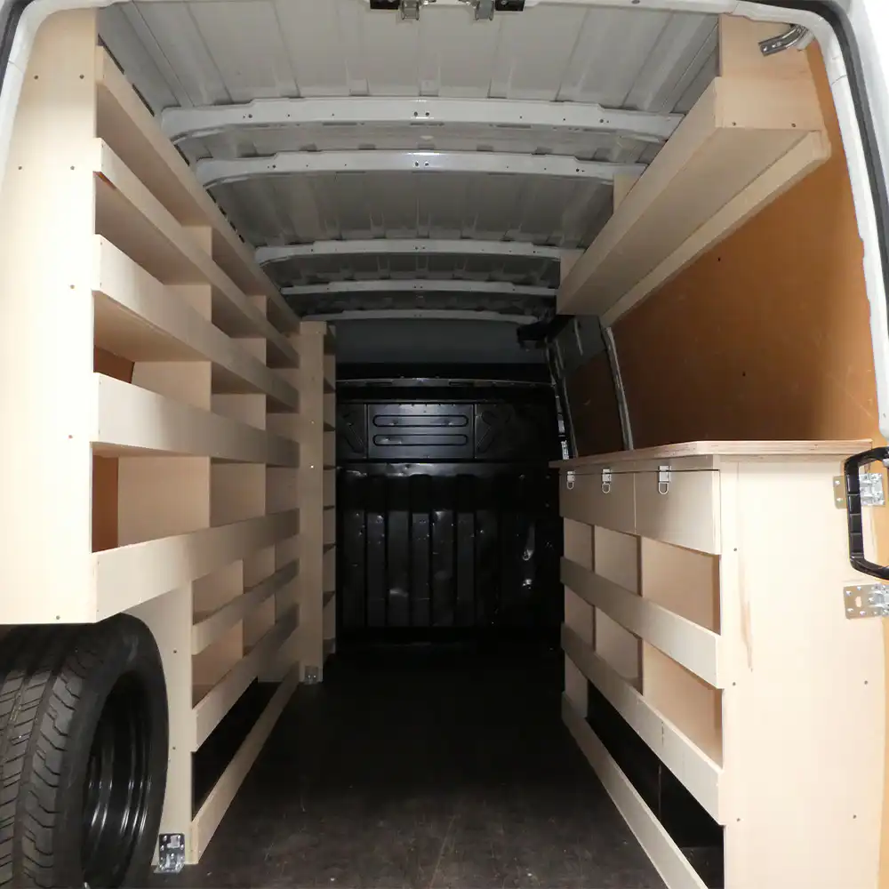 L’Iveco Daily est conçu pour les missions les plus exigeantes : fort volume de chargement, haute capacité utile et structure renforcée. AVD exploite tout son potentiel avec des aménagements sur mesure : plancher antidérapant, habillage bois filmé ou polypropylène, rails d’arrimage, mobiliers professionnels, tiroirs profonds, modules de rangement renforcés.