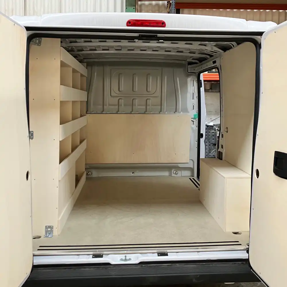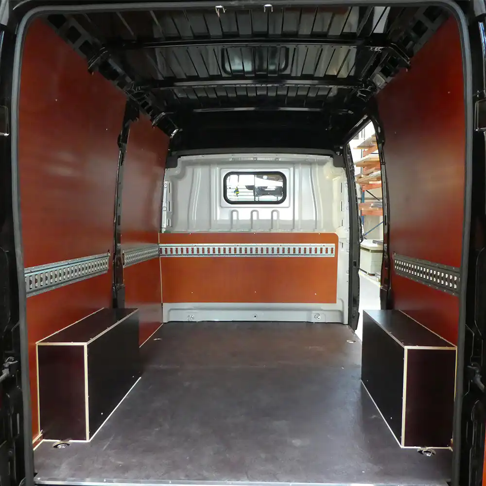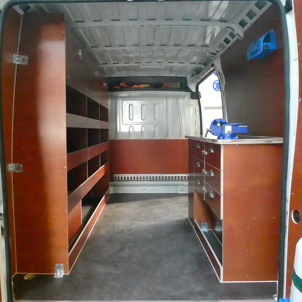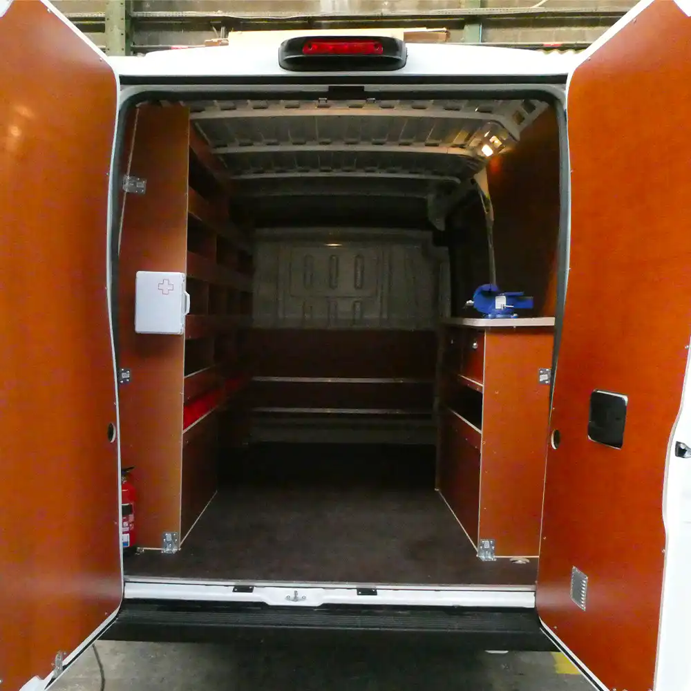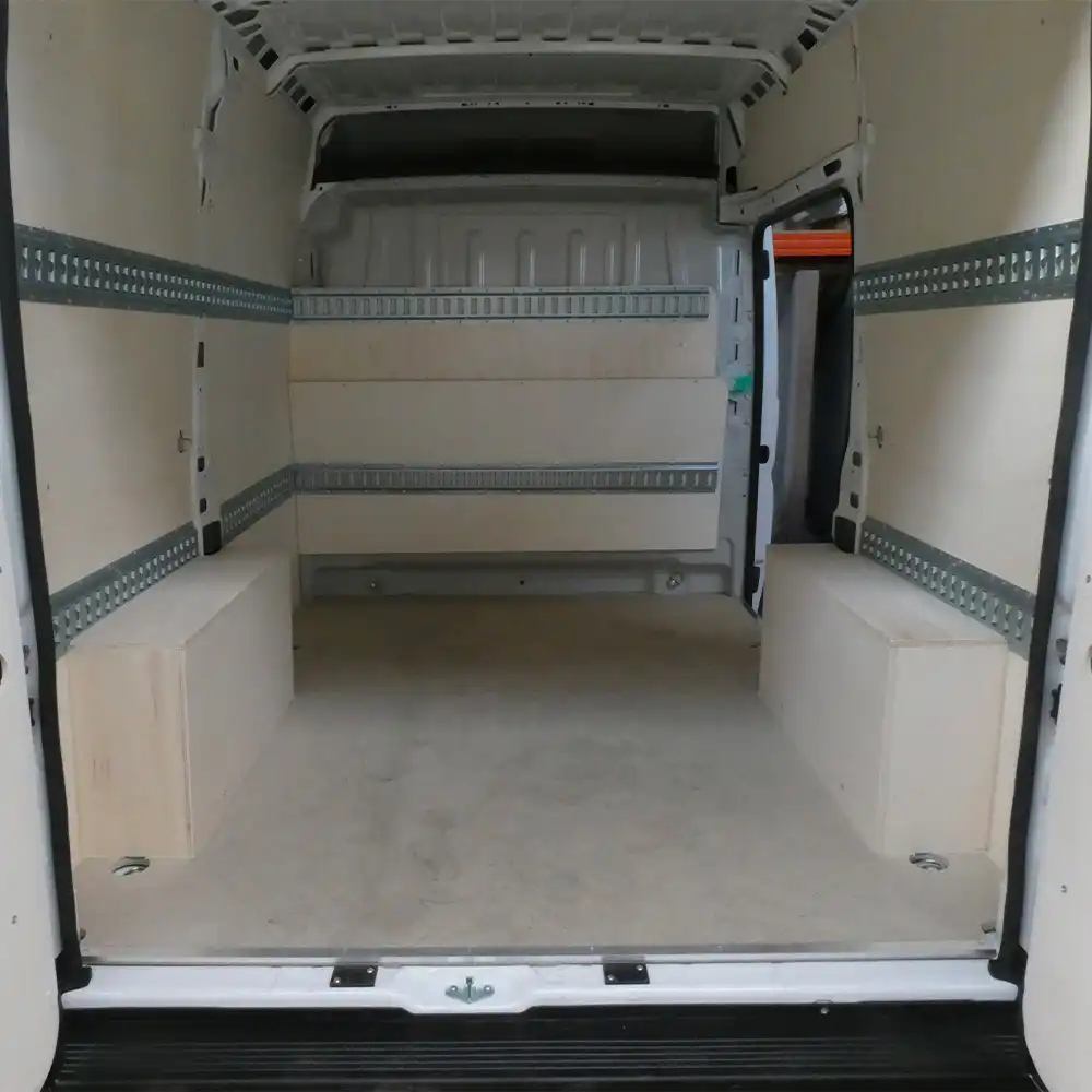 Le Fiat Ducato est l’un des utilitaires les plus spacieux du marché, idéal pour les professionnels exigeant un grand volume de chargement. AVD vous propose des aménagements robustes, pratiques et adaptés : habillages en bois filmé ou polypropylène, planchers antidérapants, rails d’arrimage, rangements optimisés et mobiliers sur mesure.