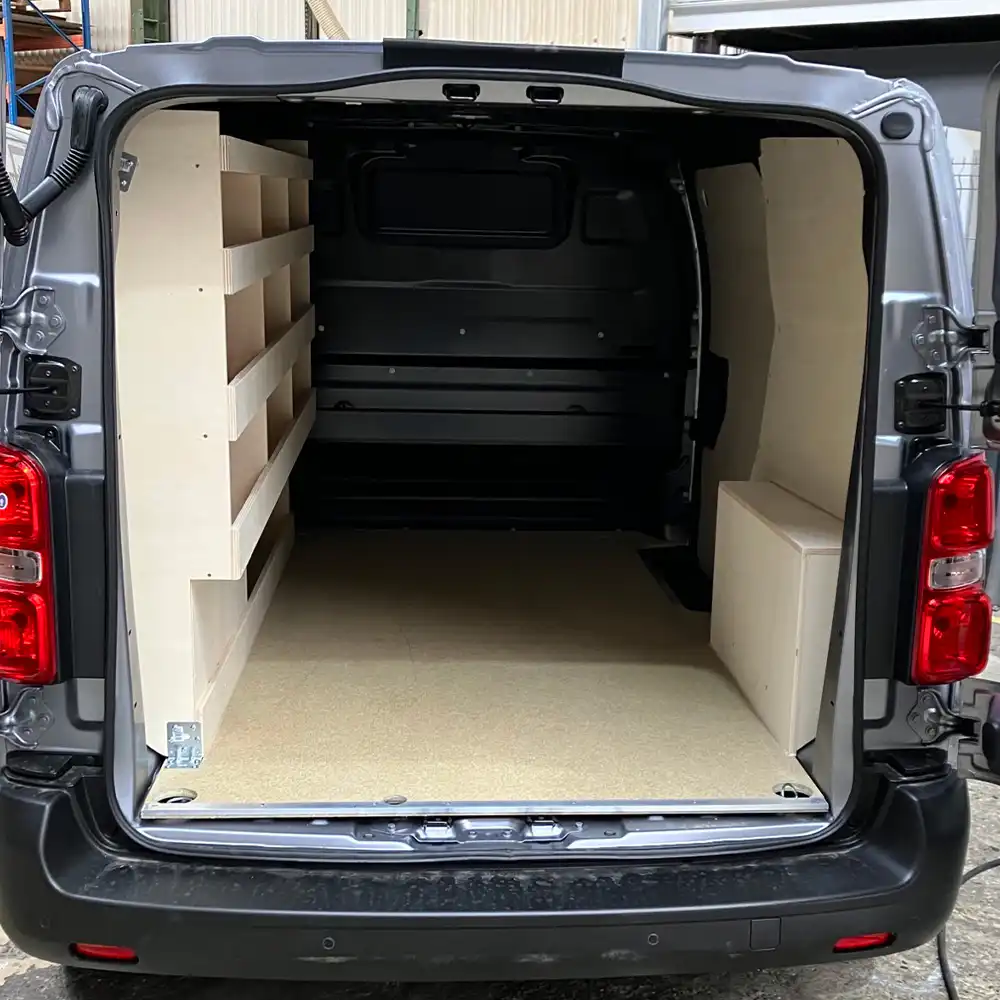 Le Peugeot Expert est un utilitaire intermédiaire qui offre un bon compromis entre maniabilité et capacité de chargement. AVD le transforme en atelier mobile grâce à des aménagements professionnels sur mesure : habillage en bois filmé ou polypro, plancher sécurisé, rails d’arrimage, rangements modulables et tiroirs robustes.