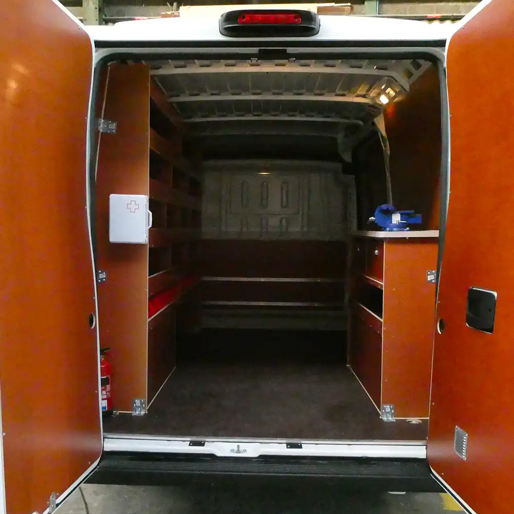 Le Citroën Jumper est un utilitaire robuste et spacieux, idéal pour toutes les activités nécessitant un véhicule fonctionnel et sécurisé. Chez AVD, nous aménageons votre Jumper selon votre activité avec des solutions durables et pratiques : plancher antidérapant haute résistance, habillage en bois filmé ou en polypropylène pour une protection optimale des parois, et mobiliers sur mesure pour organiser efficacement l’espace.