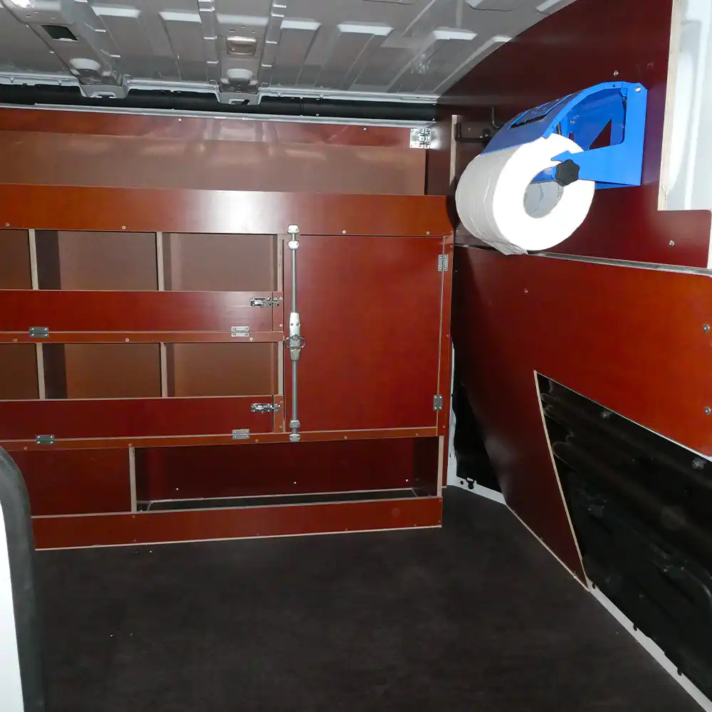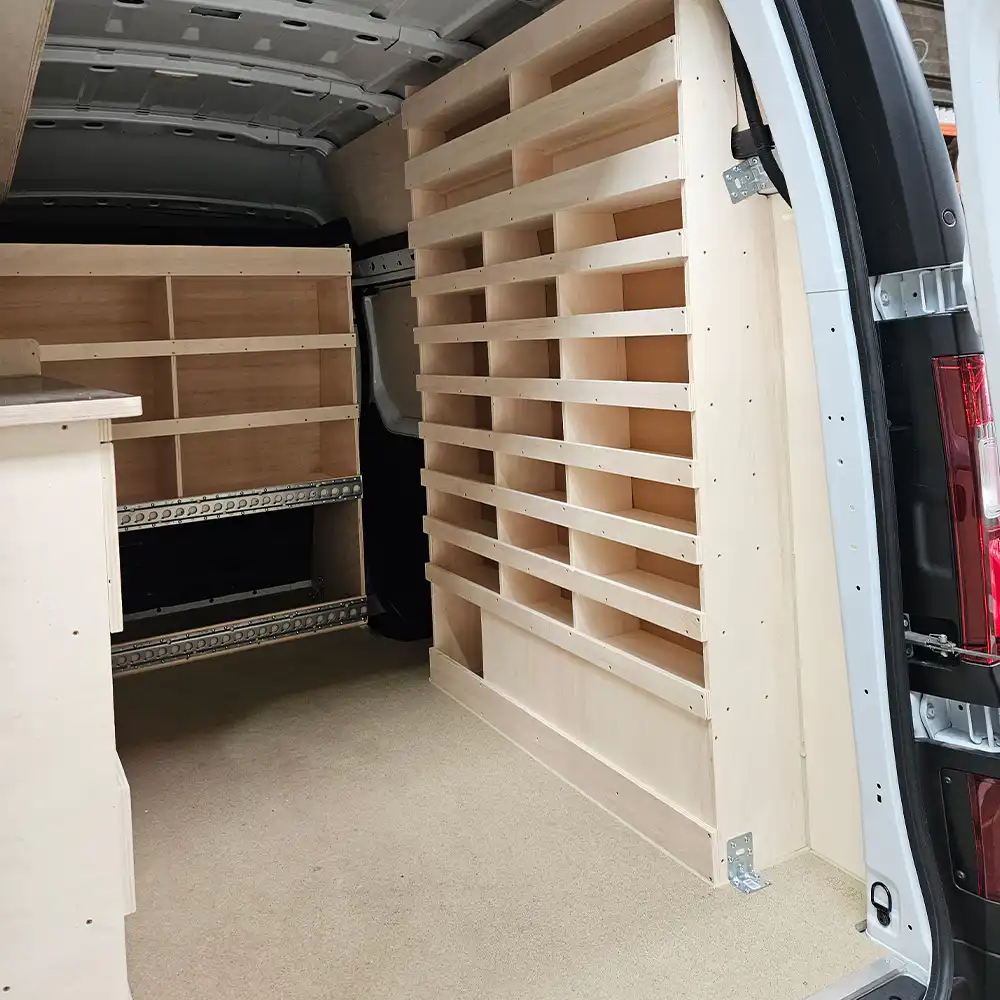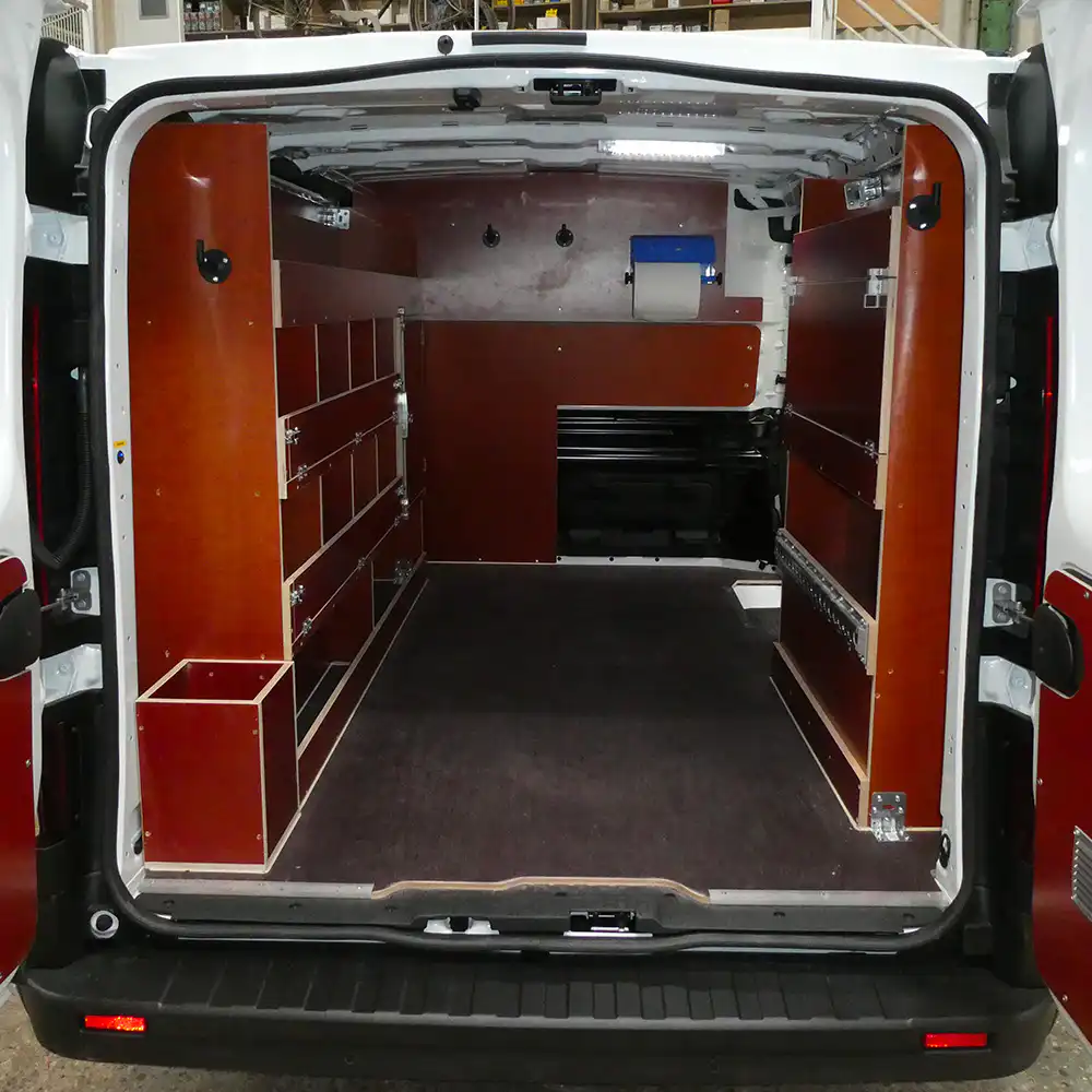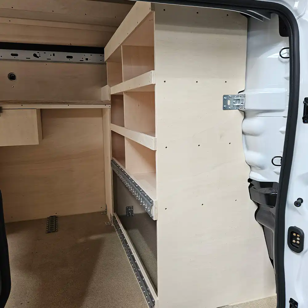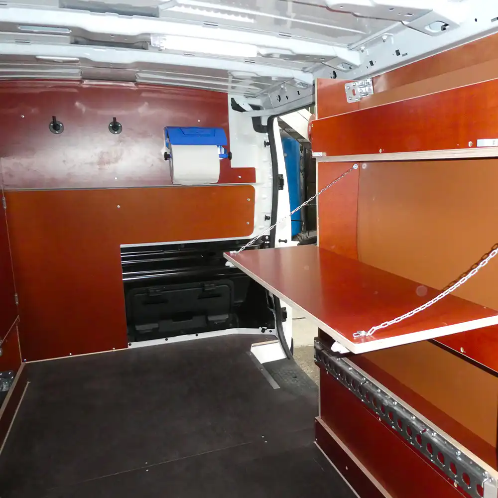 Nos agencements sont conçus dans notre atelier de Vénissieux, avec des matériaux robustes et une découpe sur mesure pour chaque modèle. Que vous soyez artisan, technicien ou transporteur, nous adaptons l’aménagement à votre activité et à vos contraintes.