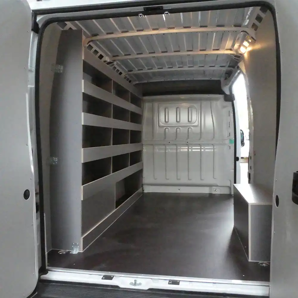 Le Fiat Scudo combine agilité et capacité, ce qui en fait un utilitaire de choix pour les artisans, techniciens et entreprises de services. AVD propose un aménagement sur mesure de votre Scudo, pour en faire un véritable outil de travail mobile : plancher antidérapant, habillage bois filmé ou polypropylène, rails d’arrimage, et étagères sur mesure.